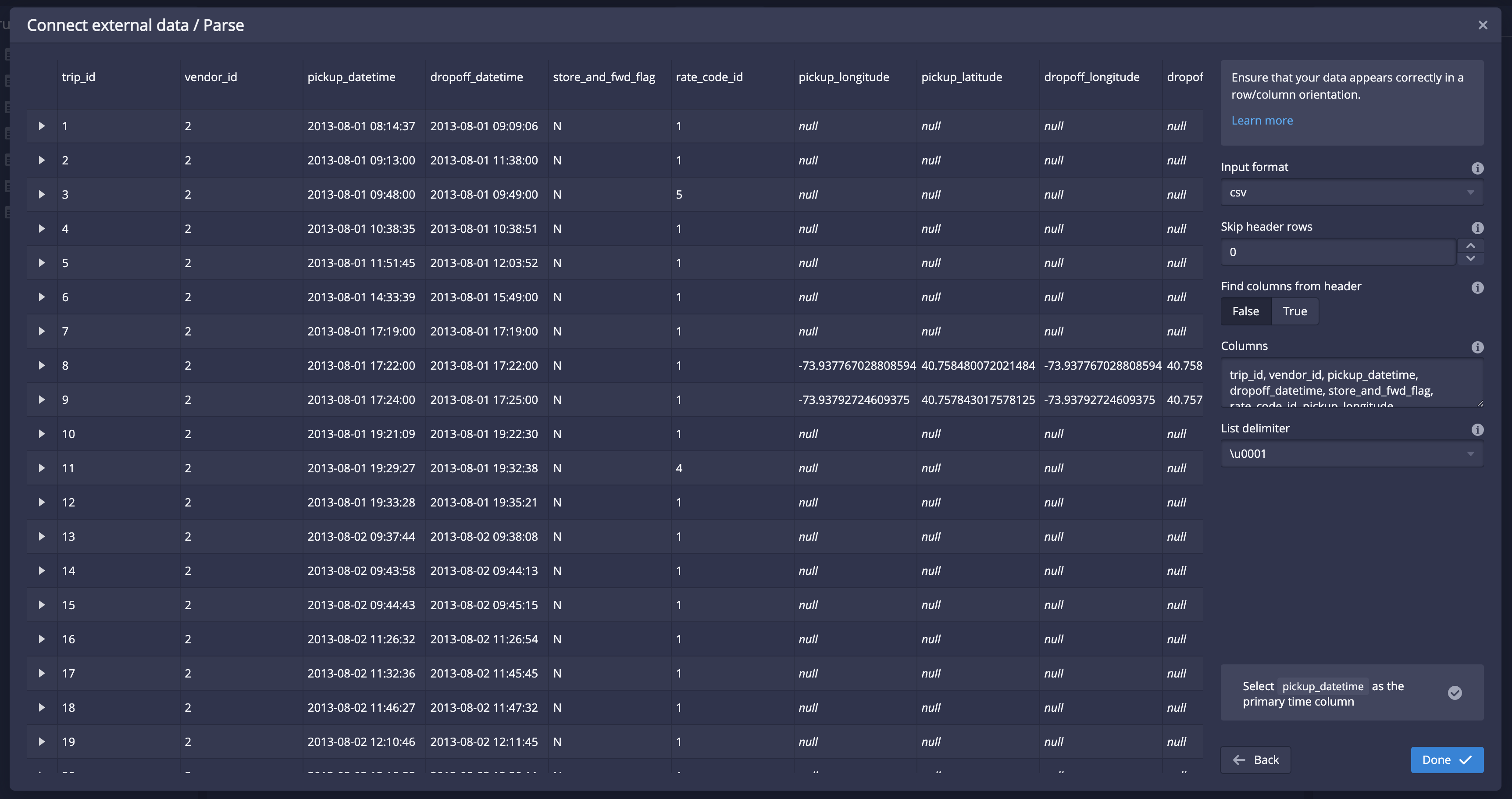 This is how the NYC example data looks now in the 'inputFormat' step: