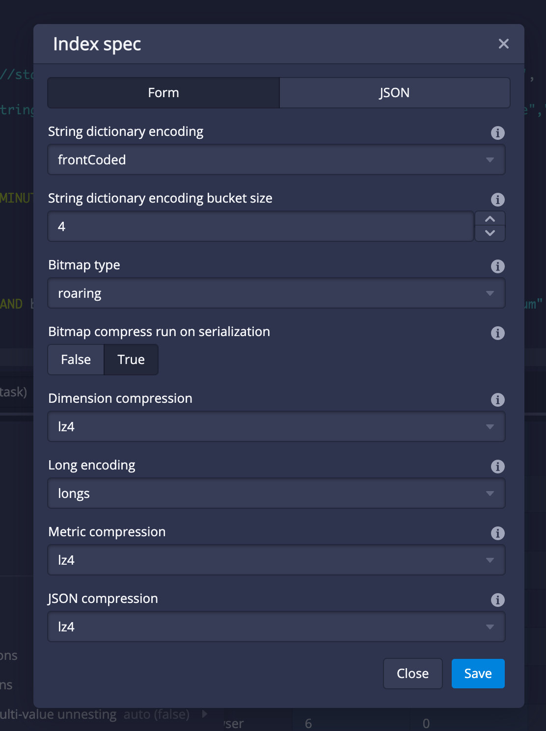 The index spec appears in many places. Make it into a custom dialog to improve the UX. Also expose it from SQL based ingestion.