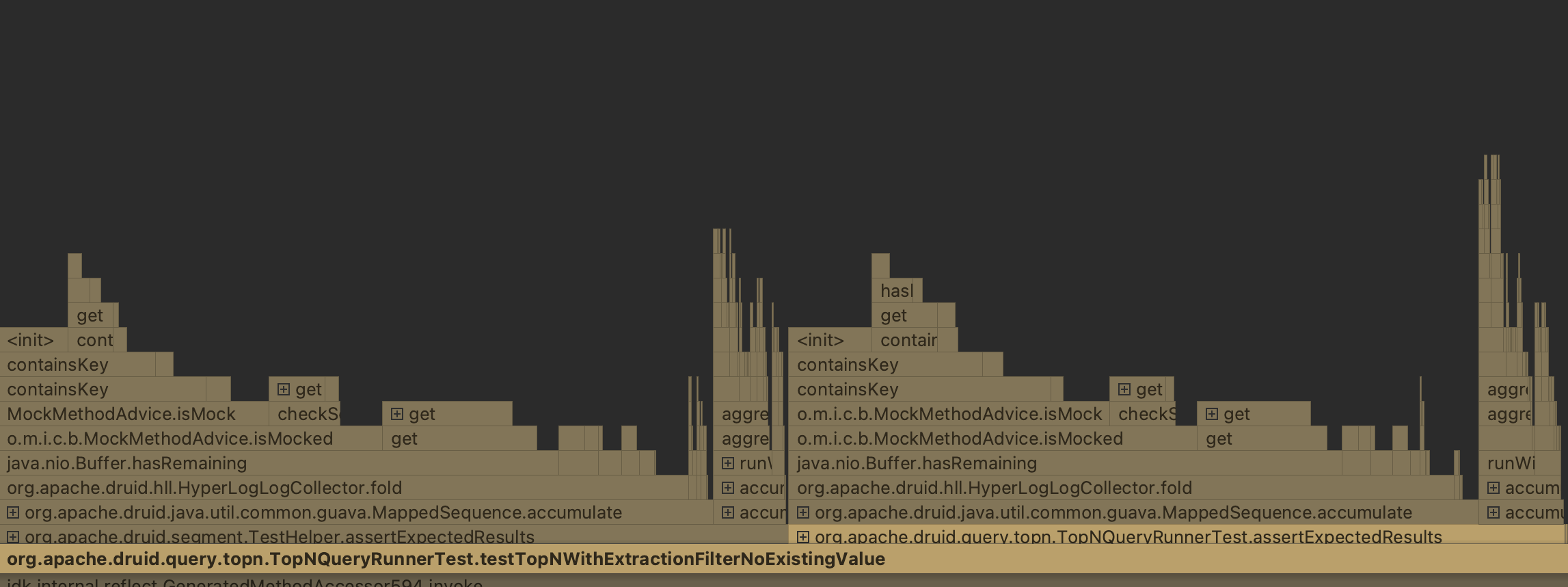 Made an interesting find in this PR due to the travis consistently timing out during compared to just running the specific test: Breaking out the profiler, and profiling both the individual test and the entire suite made me notice an interesting difference in the flame graph of all "What was I added these tests - they weren't actually mocking a buffer, and the code shouldn't actually use a buffer, so it seemed harmless to use a mock, but my bad, i realize this is certainly not the case at least with Mockito. Modifying this test to use an empty but very regular heap So, moral of the story, it might be worth going over the tests and ensuring we limit usage of Mockito to uses that truly require it to avoid cross test strangeness like this. |