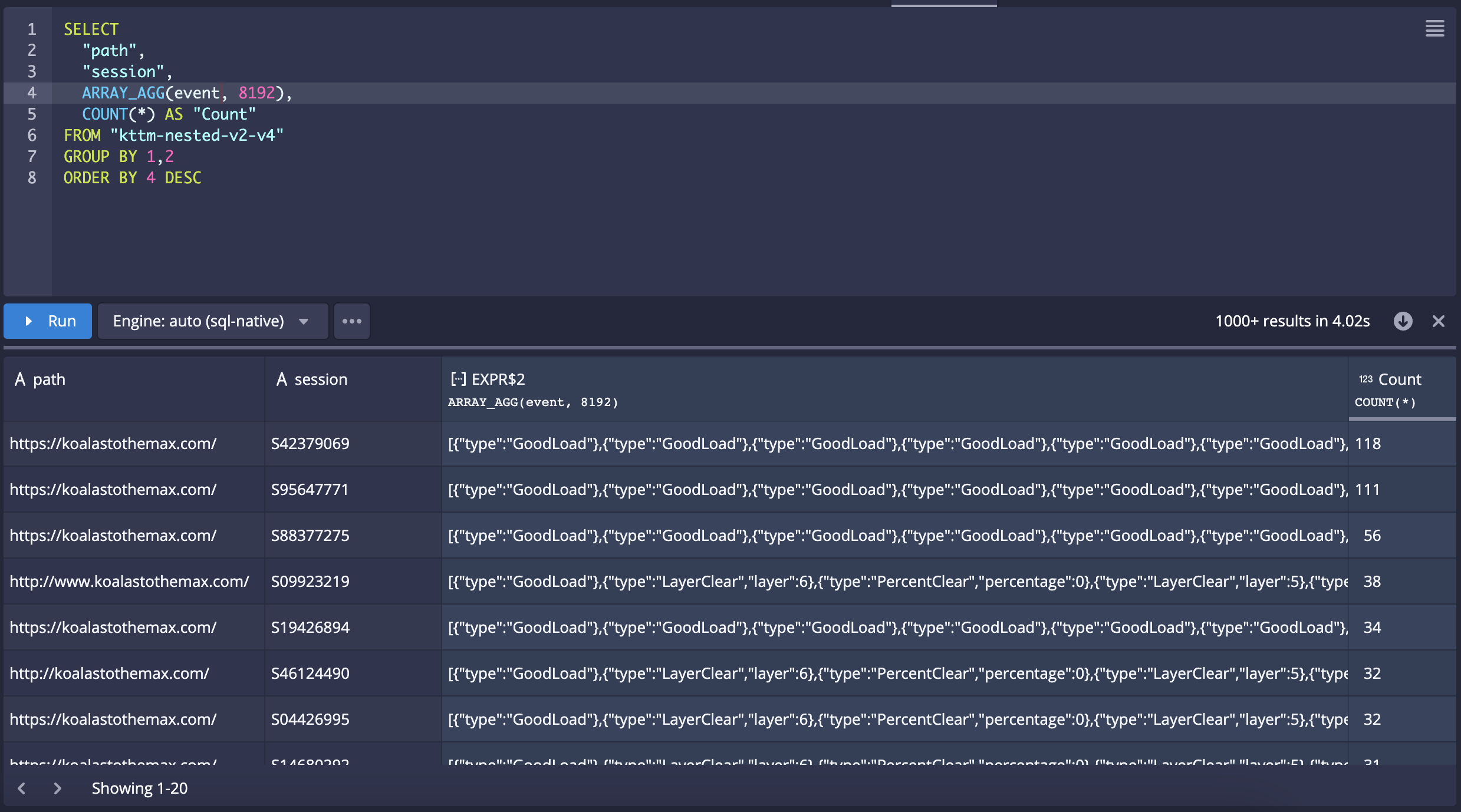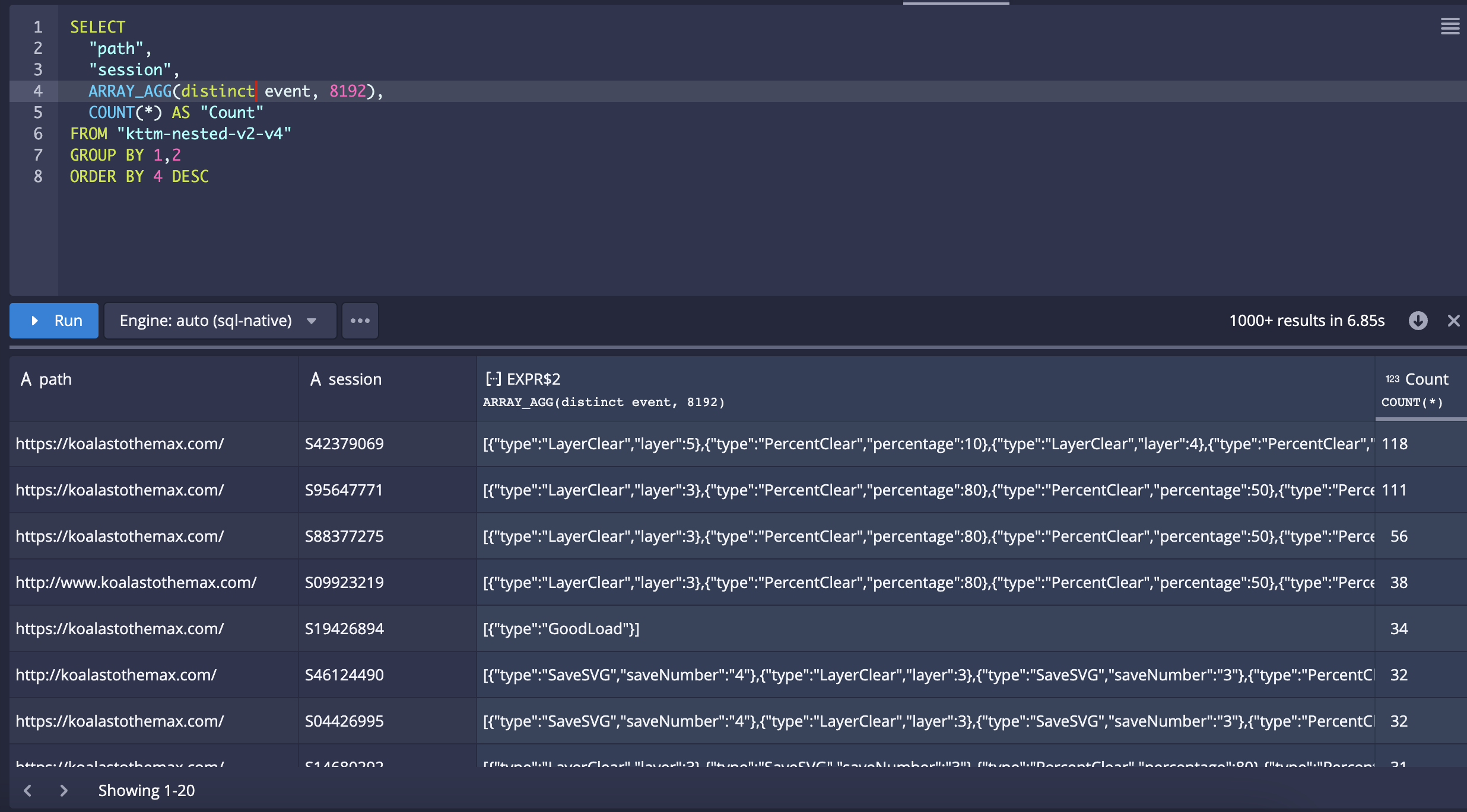 ARRAY_AGGwhich was preventing use with druidCOMPLEXtypes, such asCOMPLEX<json>. This check is a relic from when this function was added, which was before the native expression system supportedCOMPLEXtypes.After removing this check, I ran into a couple of rough edges, and a bug in