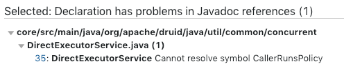 @drcrallen It looks like there's a reference to CallerRunsPolicy in a javadoc, a class that was not copied over. (You should be able to see this stuff by registering for a TeamCity acct.) Probably the right thing to do is edit the javadoc. |