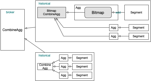 So this extension try to use bitmap(64bit RoaringBitmap) as the container for the result data from the historical to reduce the data tranfered from historical to broker.