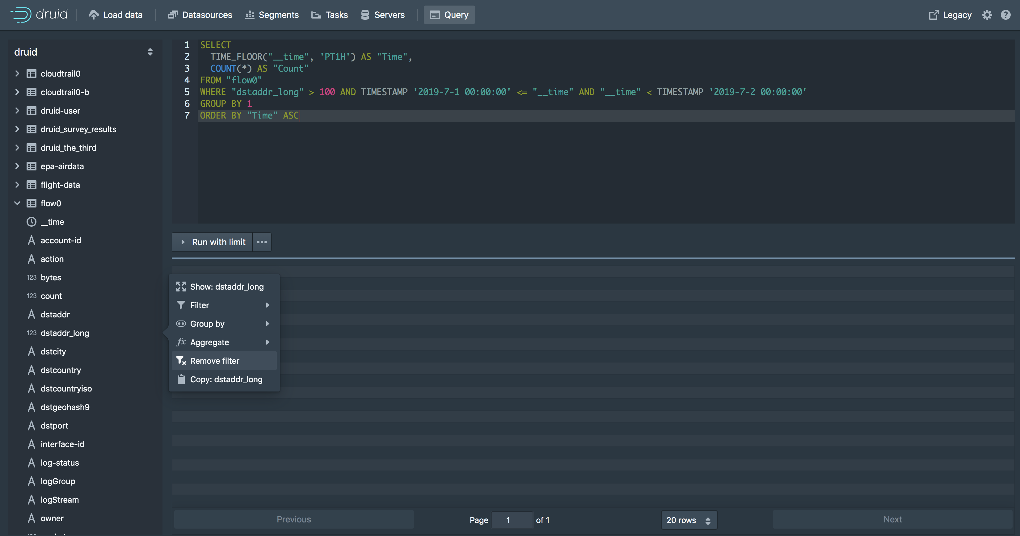 The column tree menu is now aware of the current filters applied in the whereClause of the queryAst. If a column is being used to filter will then be presented with the option to remove that filter