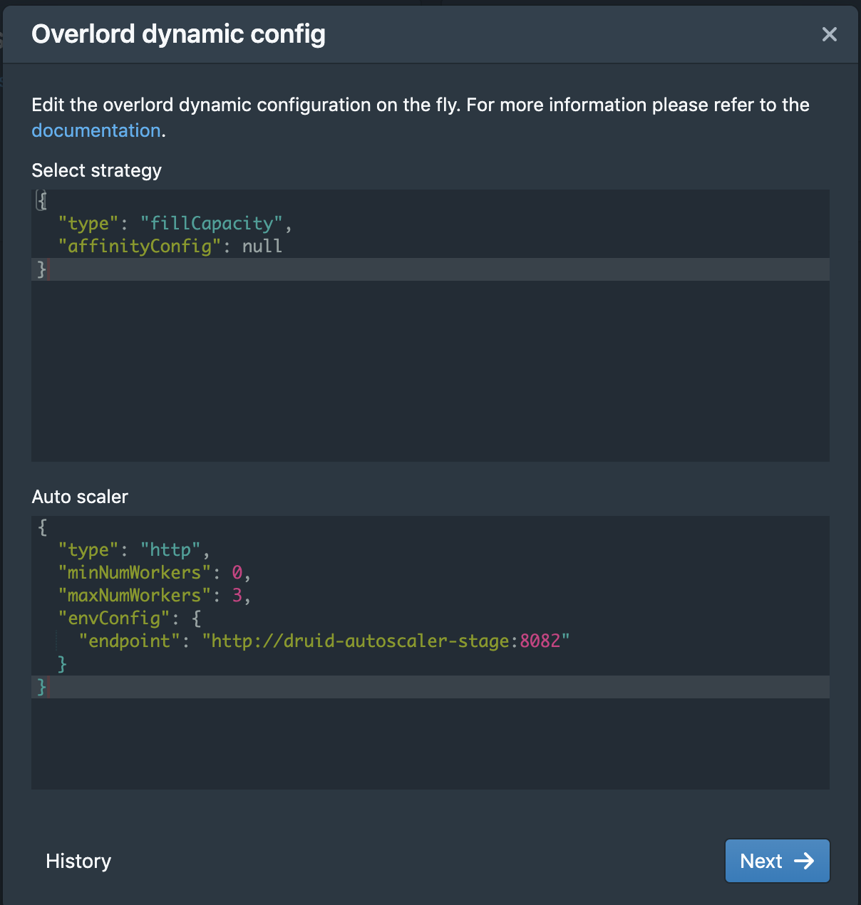 One thing I noticed recently, is that the new web-console is not treating the behaviour config as a single json object but has separate text boxes for select strategy and autoscaler.