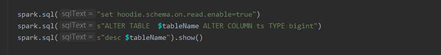 first, If I use spark ddl to change the field data type or other ddl, and then I use spark df to add a new filed, then will throw a NullPointerException