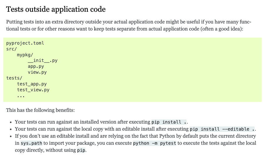 __init__.pyfiles in the test package:This is nice because it won't place the Python tests on the python path