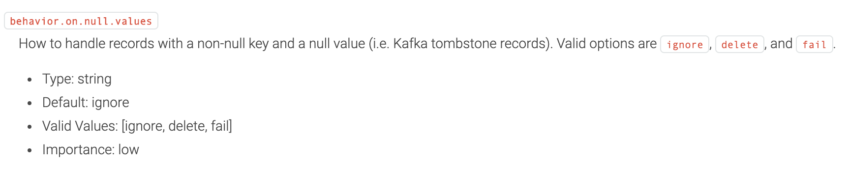 So, does an insert config on a tombstone <k,null> will still produce a <k, null> (hence ignored), or will it produce a <k, v> where v contains only the inserted fields. If it does not propagate the null value, I am concerned it will skew the elasticsearch connector config |
