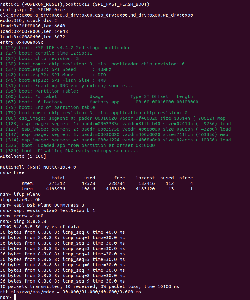 ostestinesp32-devkitc:psram_usrheapdefconfig.Successful connection to Wi-Fi network using a custom version of