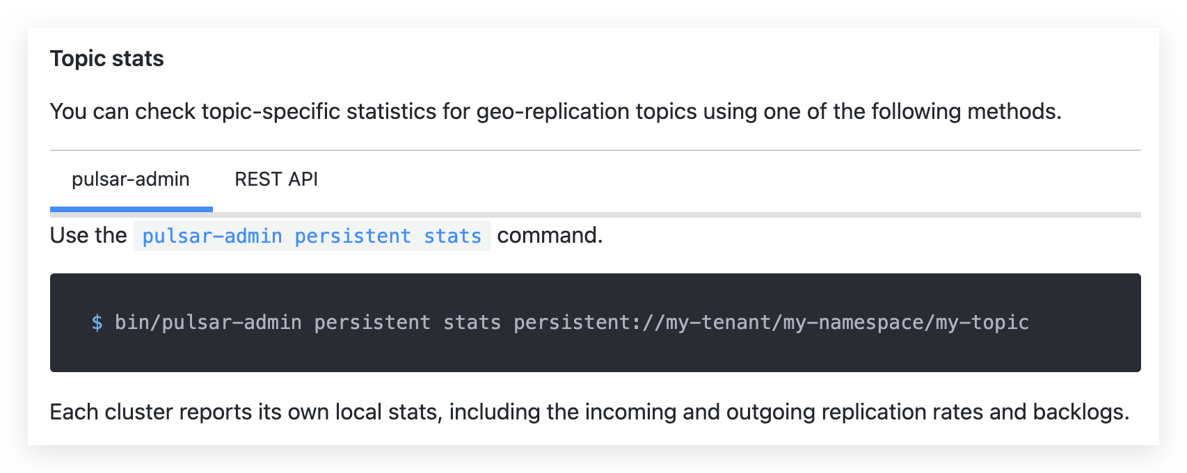 @Anonymitaet @Huanli-Meng @Technoboy- Enable or disable geo-replication on the topic level will release at 2.8.3 and 2.9.1, so we don't need to add doc for 2.8.1, 2.8.2 (since @315157973 already started the 2.8.2 release.) |
