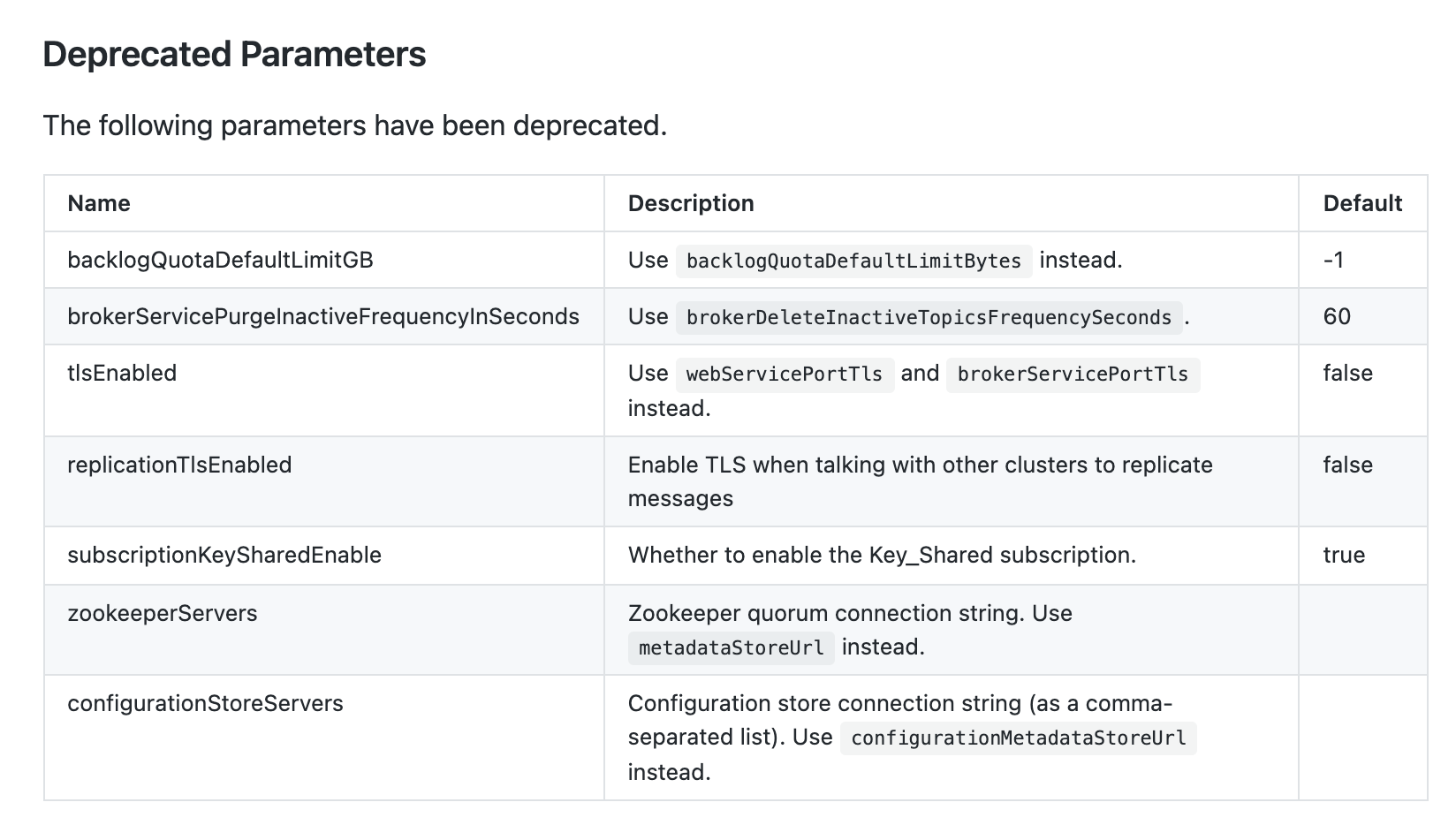 | |tlsEnabled| Use `webServicePortTls` and `brokerServicePortTls` instead. |false| | ||
