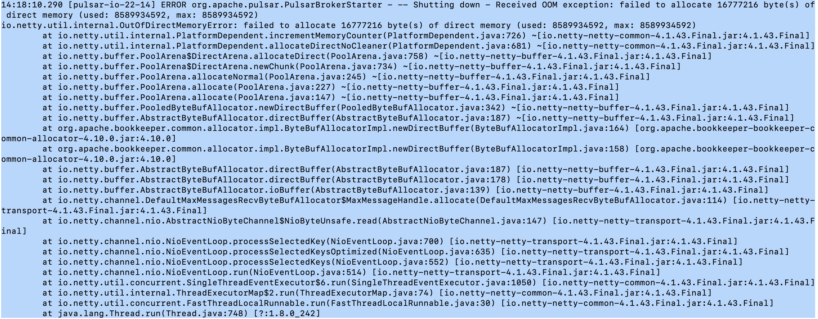 I think you offload to hdfs is too slowly, and then you produce message is too fast. and then many ledger will offload int the same time. so we maybe should control the read-ahead number or the whole fileSystem offload task number |