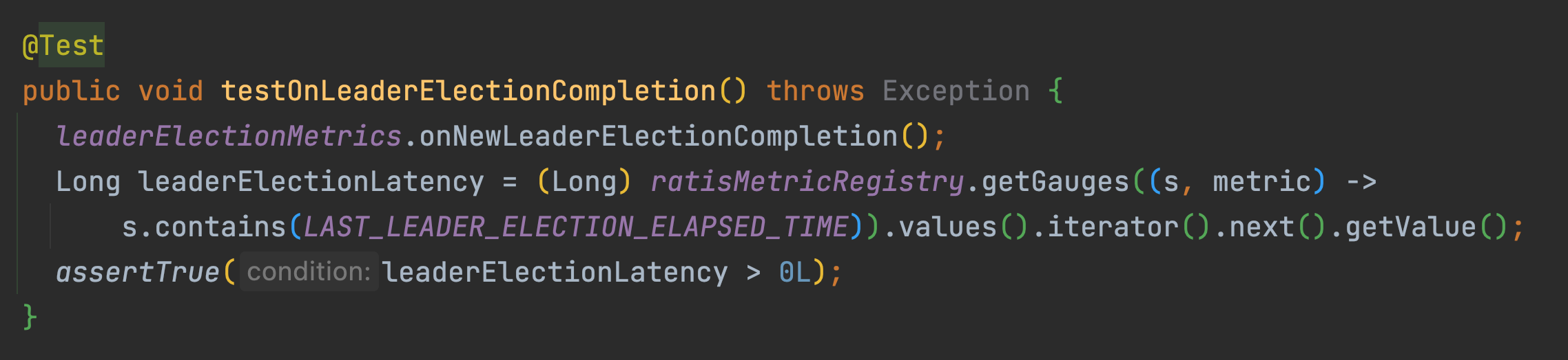 @szetszwo , it's sad that the unit test is failed again. I need your help. What I am confused is that whether the LAST_LEADER_ELECTION_ELAPSED_TIME gauge can be zero? |