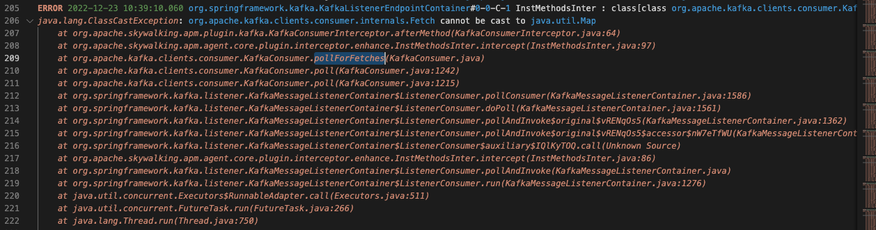 pollForFetches. The return type isorg.apache.kafka.clients.consumer.internals.Fetchnow.This will cause an exception in SW agent 8.13.x