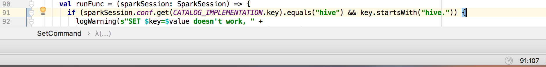 if (sparkSession.conf.get(CATALOG_IMPLEMENTATION.key).equals("hive") &&