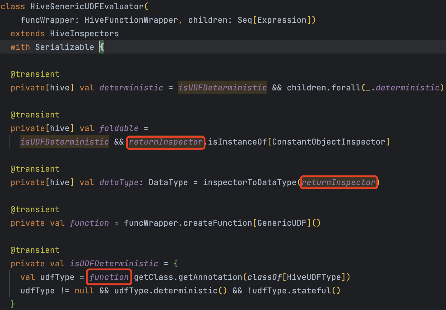 | override lazy val dataType: DataType = inspectorToDataType(returnInspector) | ||