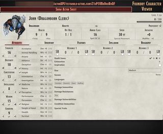 If you click on the [ Go to Application ] button it opens the character sheet in a new window. This url to your character should work as long as the Foundry server is online. No matter what world it is on (as long as the world has ran with this plugin at least once.)