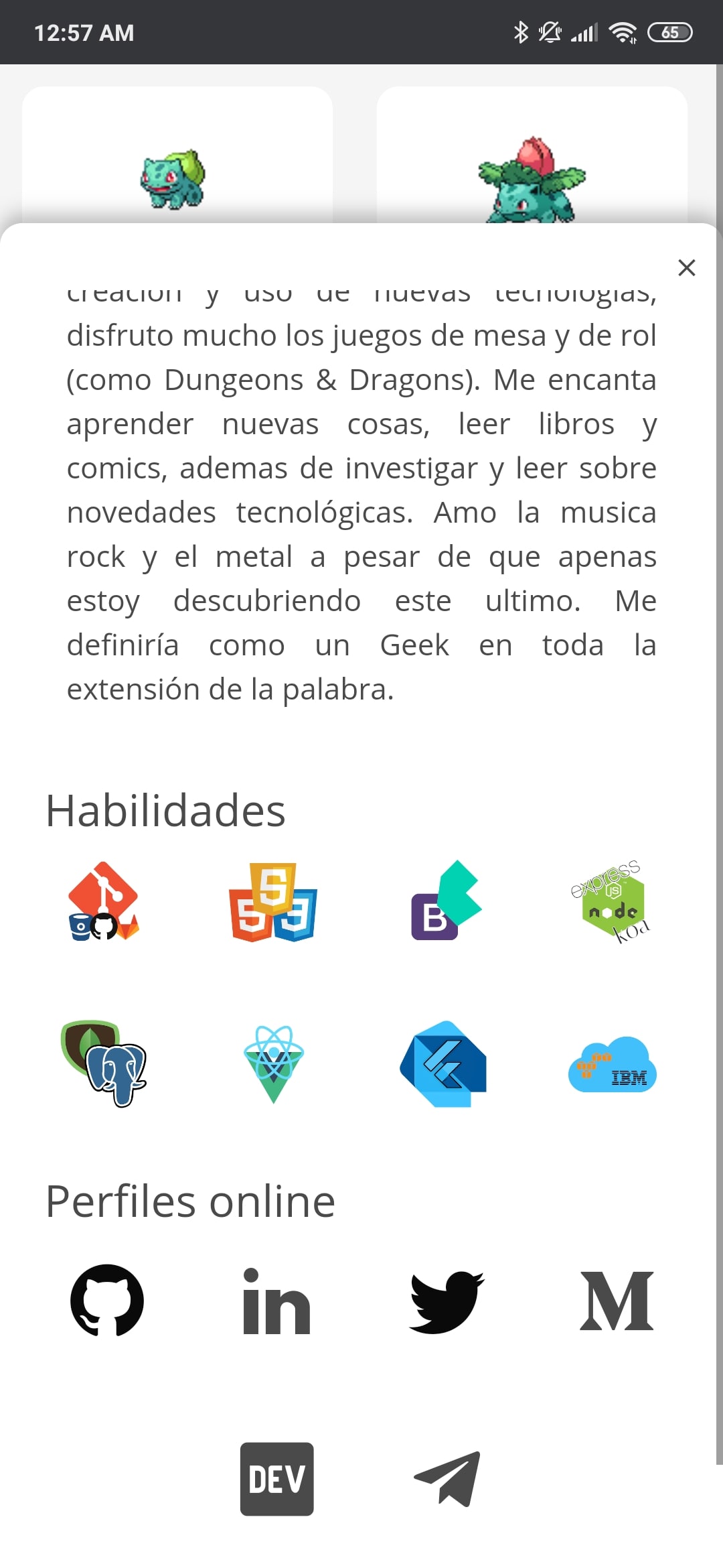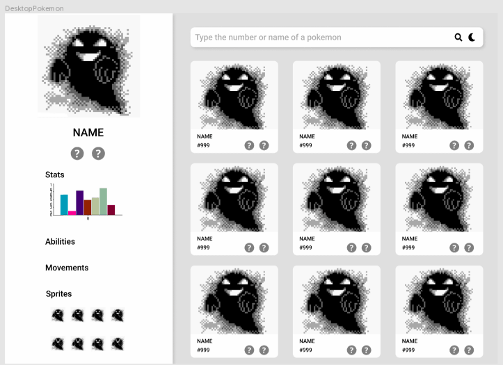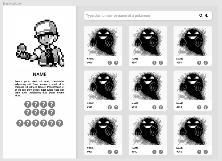 Thanks to NextJs it posible to use Server Side Rendering to optimase loading times, and using react window the big grid (~900 items) its virtualized to reduce the rendering in screen. With Bulma the style it's easy to make because of his column system based on flexbox. Using Now for the deploy allows to deploy every commit and merge directly to the web. AWS S3 was used as cdn to have an space to save all the static files like images and a Lambda serves a json with the data of the user Figma allows to create amazing mockups in an easy way. GitLab's kanban board, Issues and Milestones lets organice and define objetives to complete de challenge. The pokeapi was used to get all the info and sprites of pokémon