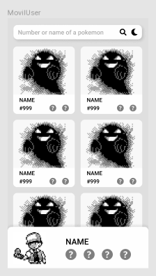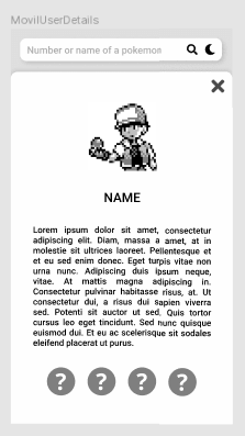 The objective is to create a Single Page Application (SPA) that shows a list of pokémon and when one its clicked the side panel shows the details of the selected pokémon like in this mockups
