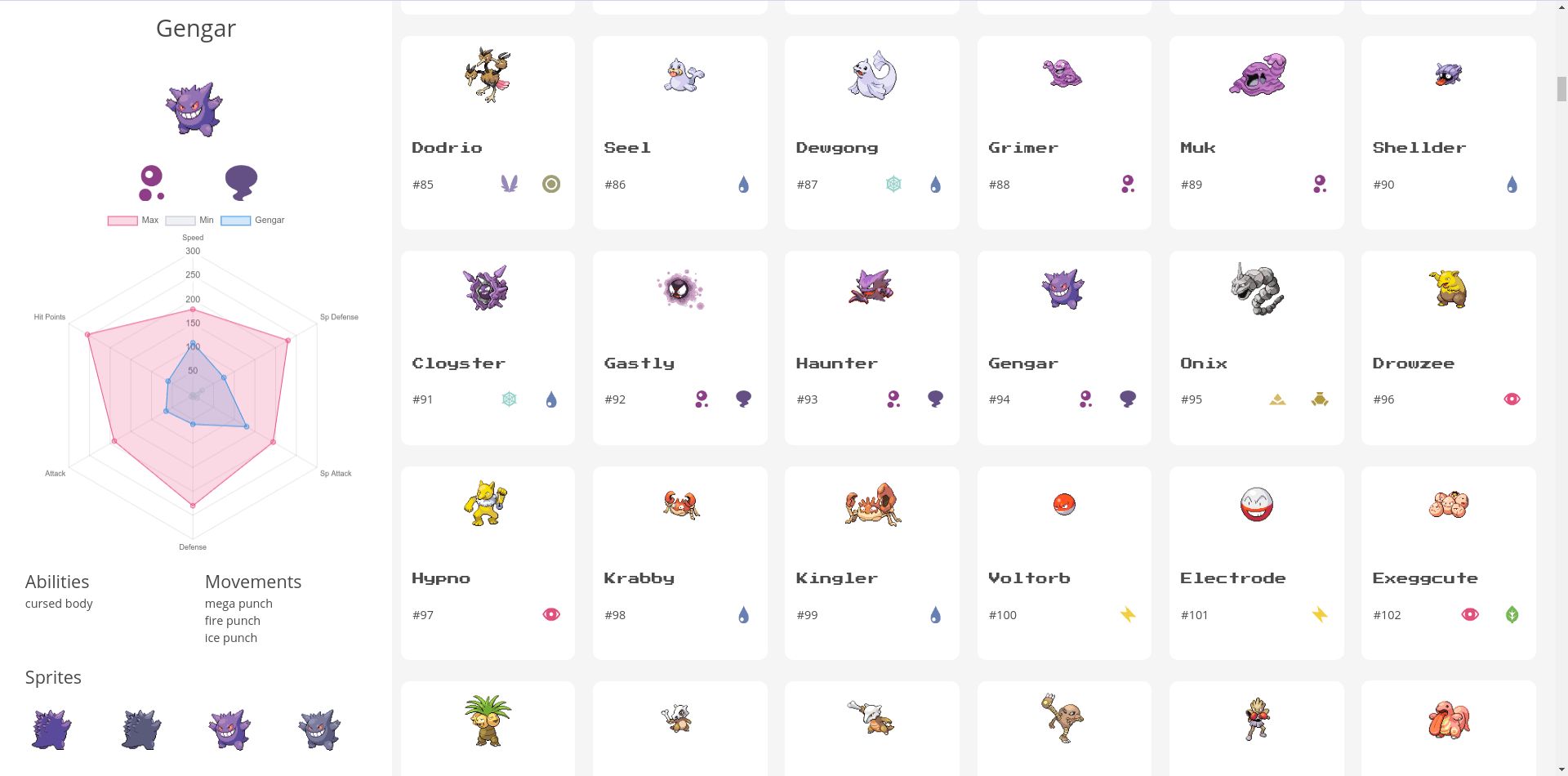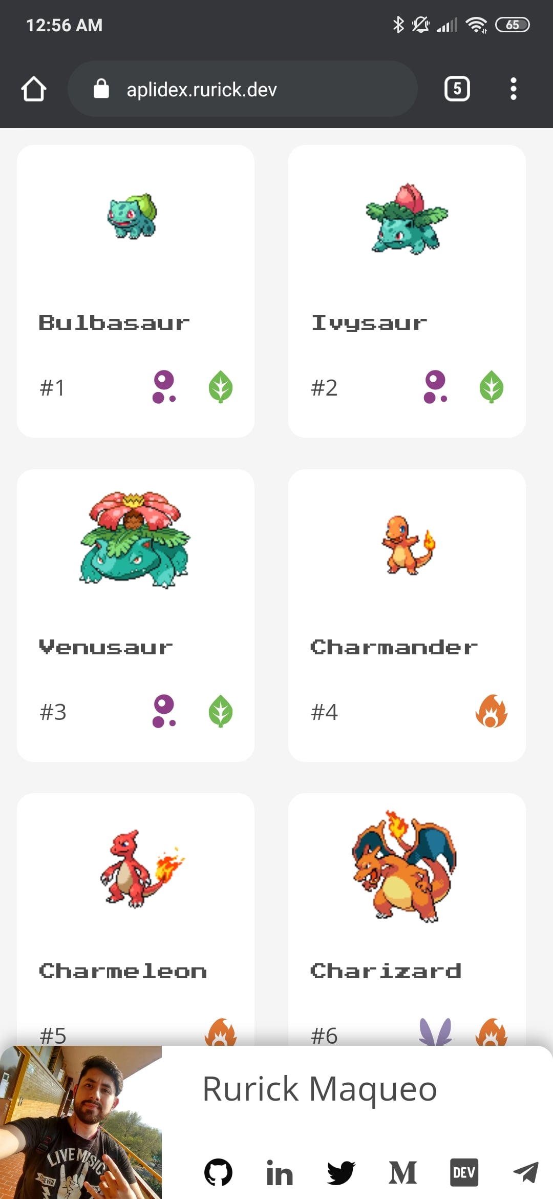 Aplidex it's a Single Web Page that shows the info of the pokemon using the Pokeapi