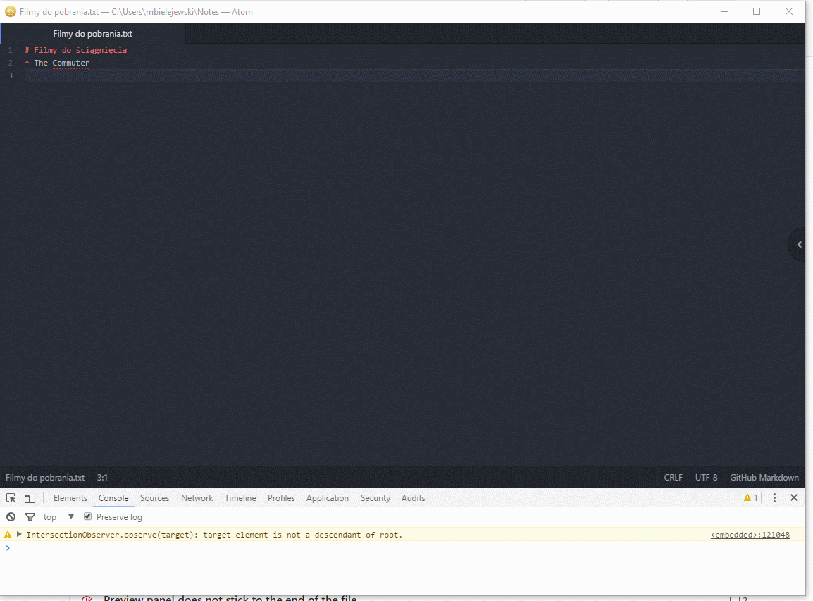 Expected behavior: HTML file get saved and opened in new pane in Atom