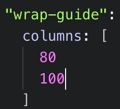 I haven't been able to have multiple wrap guides show up successfully yet. If I edit the wrap guide columns array in the config file, as per the instructions, I never see multiple guides (even after reloading Atom to ensure the settings "took"):
