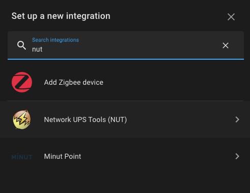 Add a new integration and select NUT, add the ip of the server where you installed it, the port and the desired username and password. All the information will be available as entities.