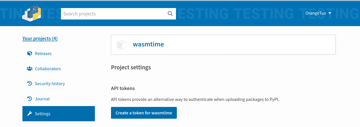 Note The CI job requires an access token in order to upload the packages to pypi. The token can be obtained in the settings menu of the package. See the screenshot: