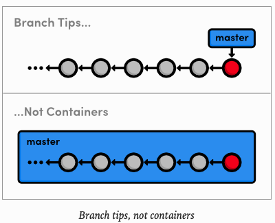 The history is represented by the parent of each commit (designated by arrows), not the branch itself. So, to request a new branch, all Git has to do is create a reference to the current commit. And, to add a snapshot to a branch, it just has to move the branch reference to the new commit. An understanding of Git's branch representation should make it easier to wrap your head around merging, rebasing, and other kinds of branch manipulation.