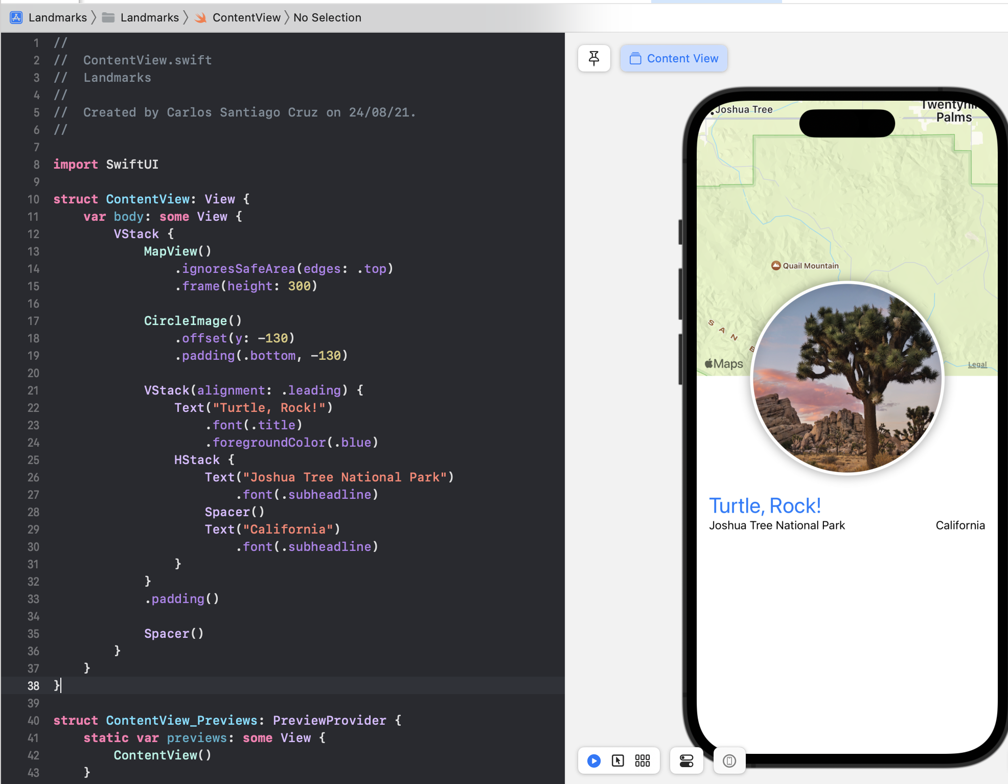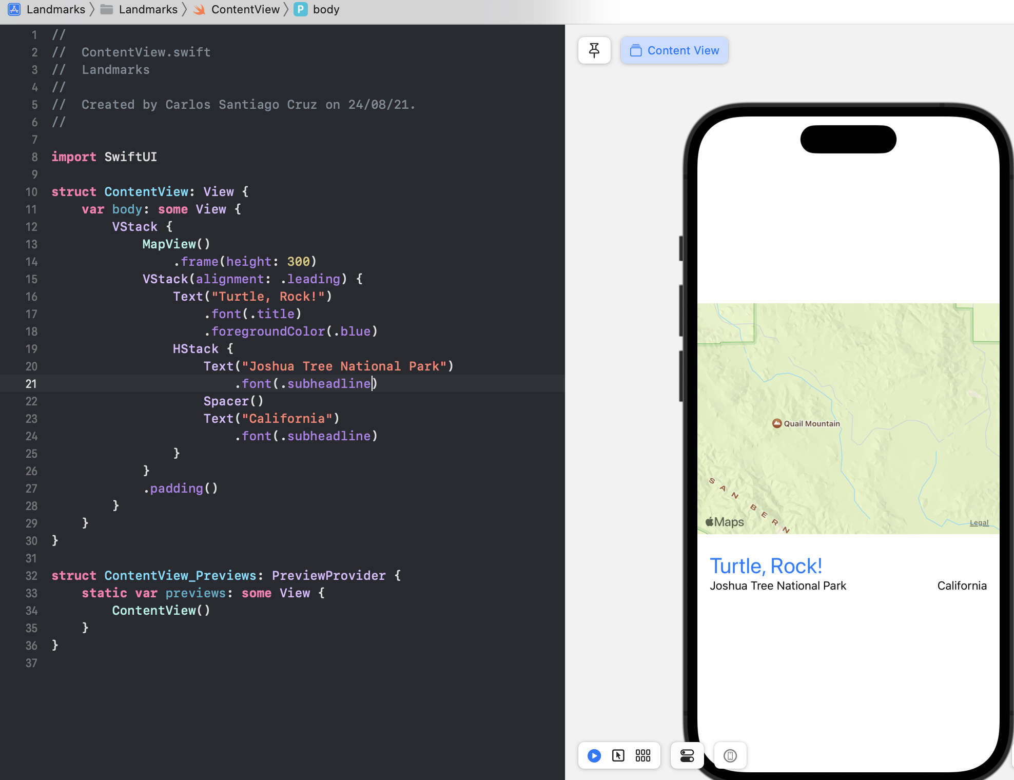 This tutorial guides you through building Landmarks - an app for discovering and sharing the places you love. You will start by building the view that shows a landmark's details.