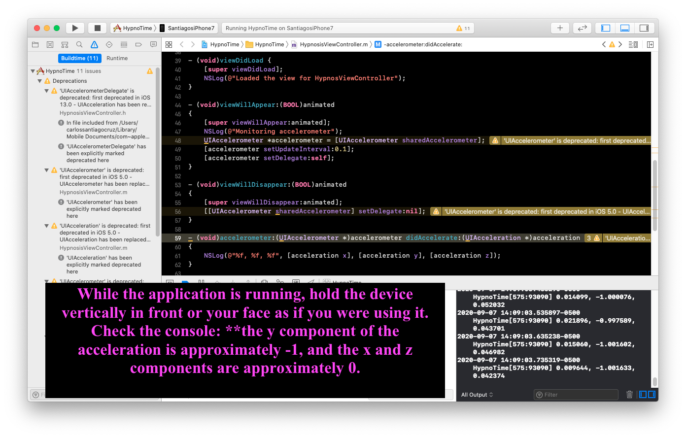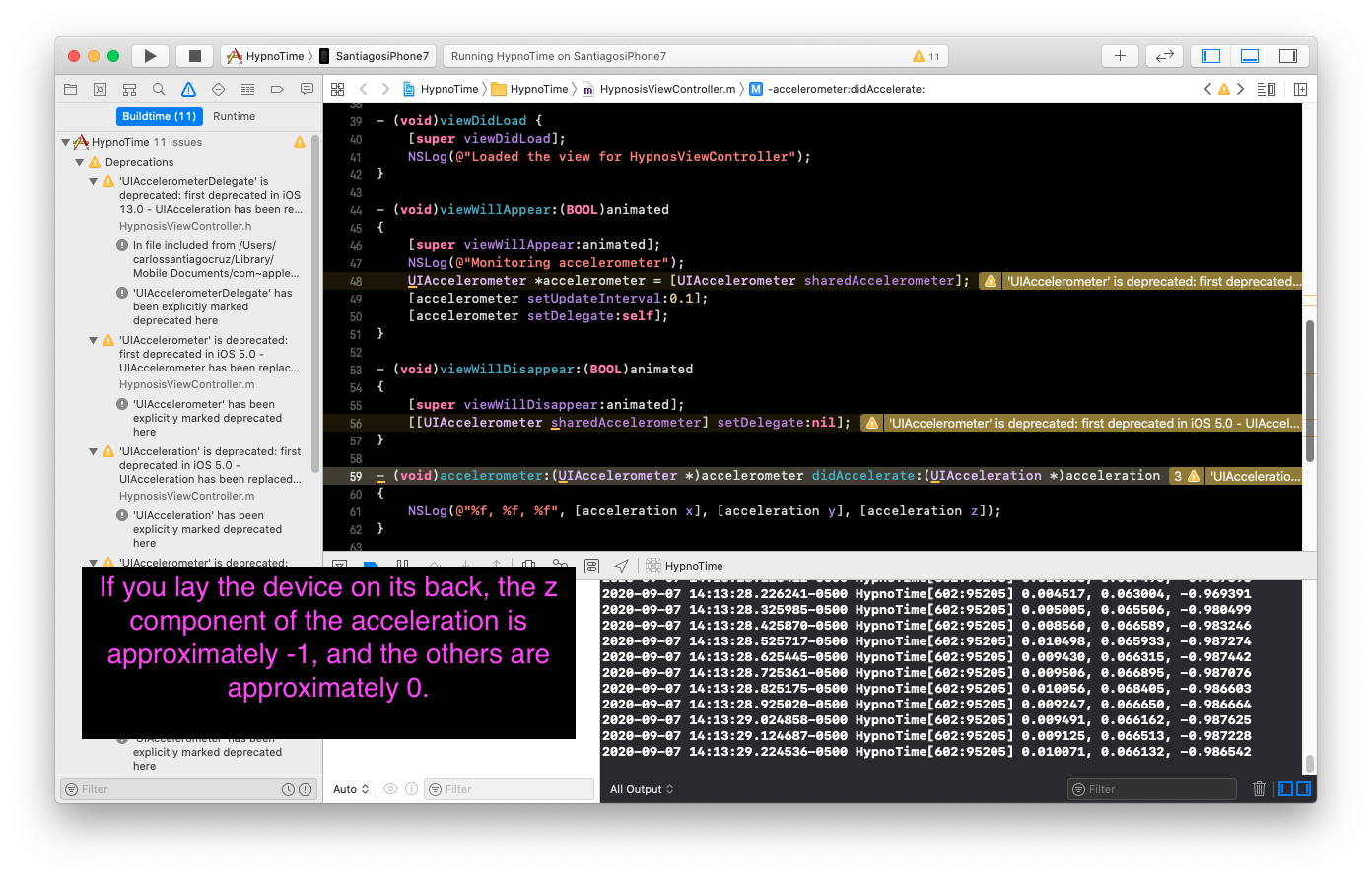 UIAccelerometer is deprecate. It was substitute with CoreMotion framework.