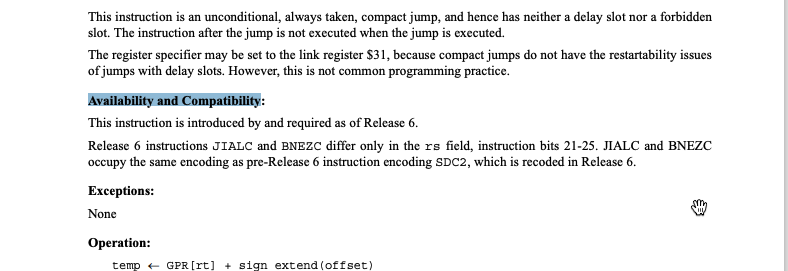 Release 6 instructions JIALC and BNEZC differ only in the rs field, instruction bits 21-25. JIALC and BNEZC