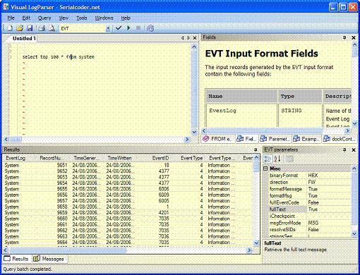 On the down side, using it from the command line become quickly boring as you need to type your sql query in a DOS prompt. As we failed to find any intuitive GUI for logParser, we just start to build our own, by assembling the following pieces: the logparser engine, a "visual studio" like MDI dockable interface, syntax highlighting...