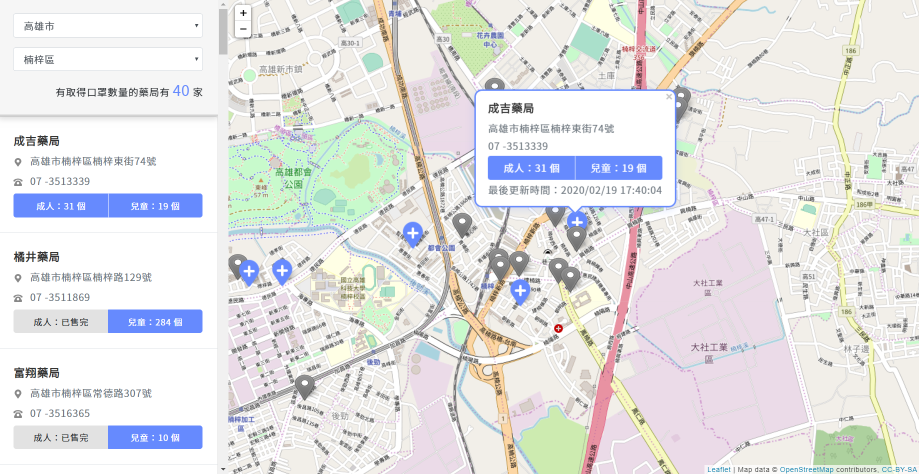 A website that shows us where to buy face masks in Taiwan, originally developed during the COVID-19 pandemic to support public health needs. Built with Vue 2 + Bootstrap + OpenStreetMap + Leaflet.