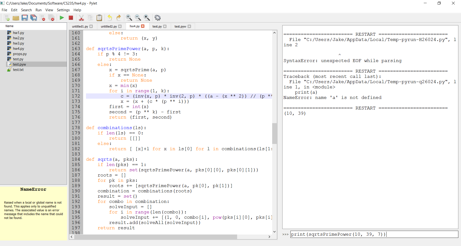 Pylet is a basic development environment for creating, managing, and tracing Python code. It is intended to be as simple as possible to accomodate students and other learning individuals.