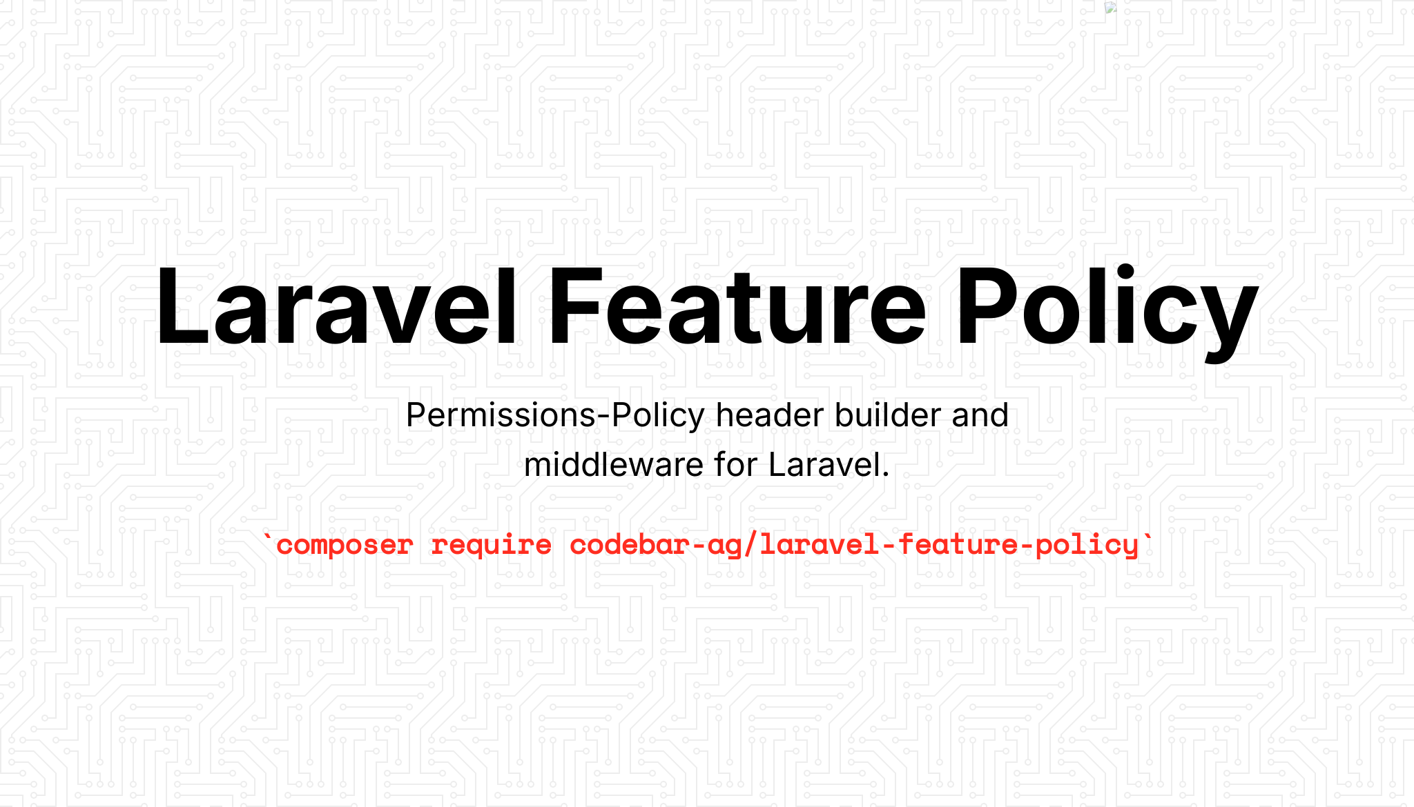 composer qualityThis package was initially inspired by mazedlx/laravel-feature-policy (MIT). The implementation has since been significantly adapted for Laravel 13 and is maintained independently by codebar-ag.
