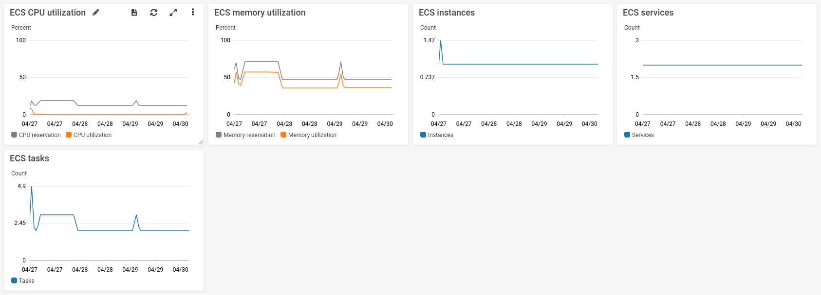 ecscontainer insightslocustfileto generate some traffic to the clusterecsmetrics:ecswidgets:Example dashboard:
