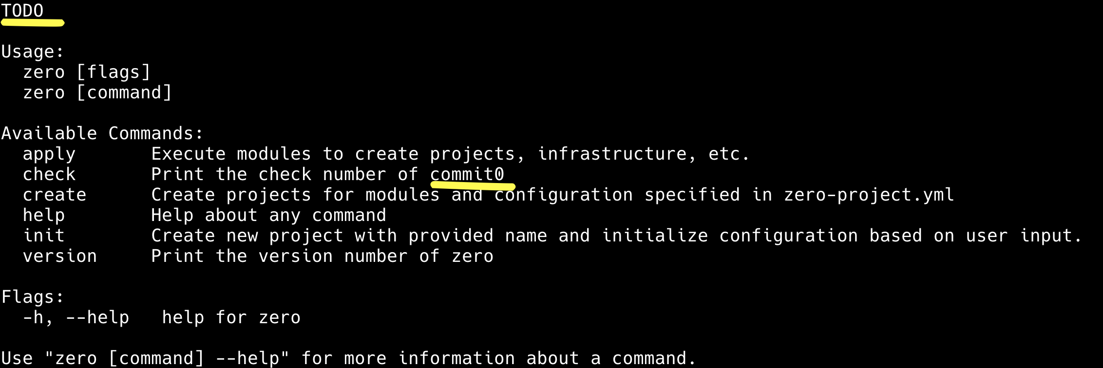 The `check` command description needs to be updated The zero tool general description should be filled out. right now it still says `TODO` <img width="1132" alt="Screen Shot 2020-07-22 at 5 02 17 PM" src="https://user-images.githubusercontent.com/7953527/88240903-6d79ed80-cc3d-11ea-8d0d-aab7ffc68a9b.png">