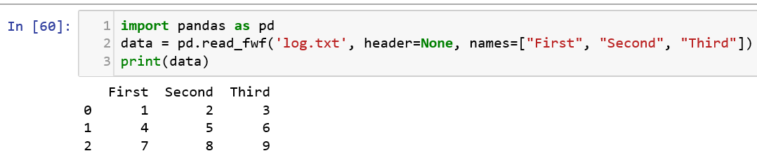 Let us try to import a text file in fixed file format using pandas.