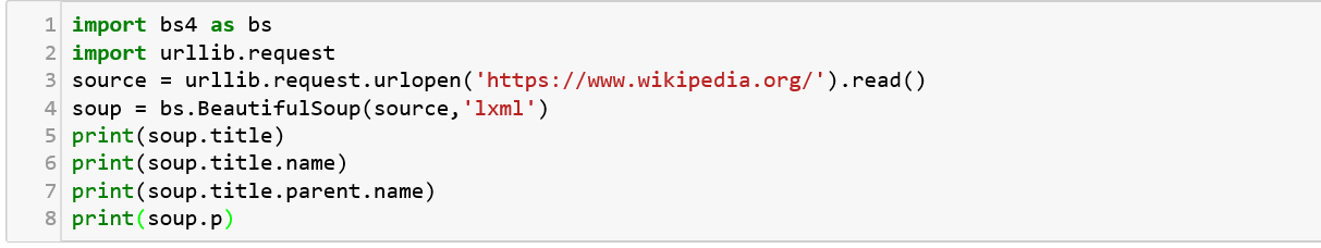 As we can see, the source URL is specified which is then parsed through ‘soup’ and broken into title and name. Similarly, many other functions can be implemented on this to extract specific information as per need for defending an application from attacks. Another similar package to be looked into is Scrapy, which is used for a little advanced version known as web crawling.