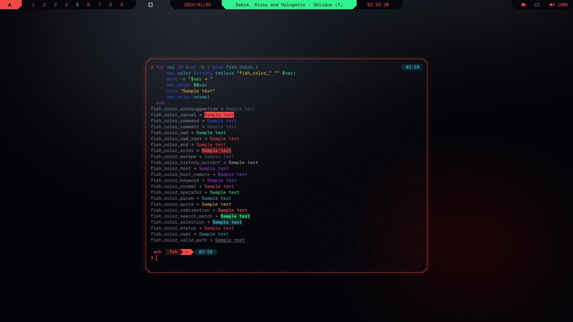 exec fishfor var in (set -n | grep fish_color_)