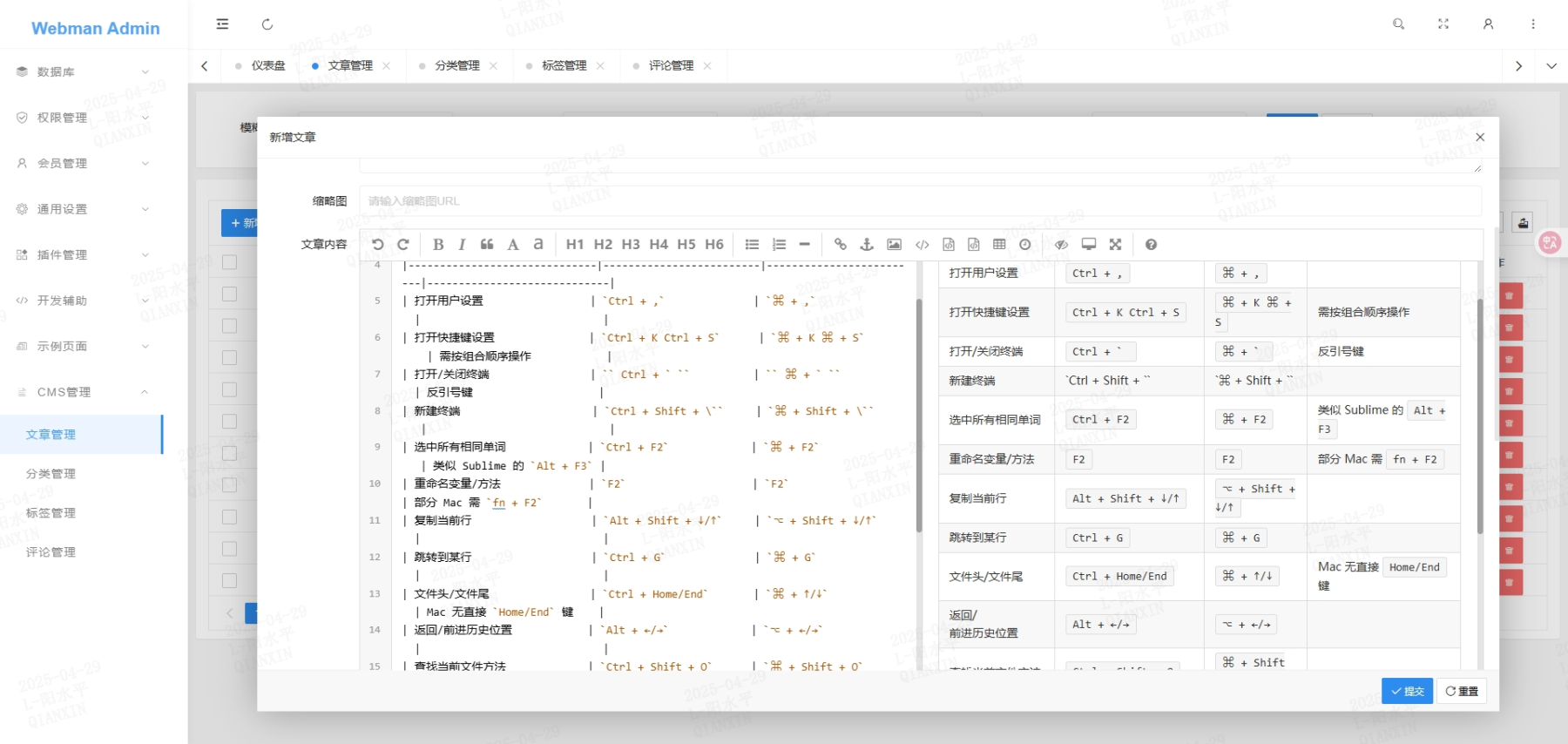 Pure CMS(Advanced Content Management System)是基于PHP的 Webman 框架开发的内容管理系统插件,支持文章、分类、标签、评论等常用 CMS 功能,适用于技术博客、资讯站点等内容型网站。