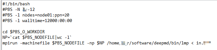 mpirun -machinefile $PBS_NODEFILE -np $NP /home/software/deepmd/bin/lmp < in.data