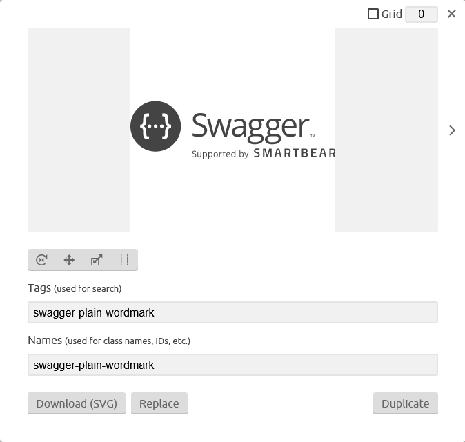 @yeyeto2788, I think it would be a good idea to separate icon from its wordmark version and call it the swagger-originalswagger-original-wordmarkswagger-plainswagger-plain-wordmark |