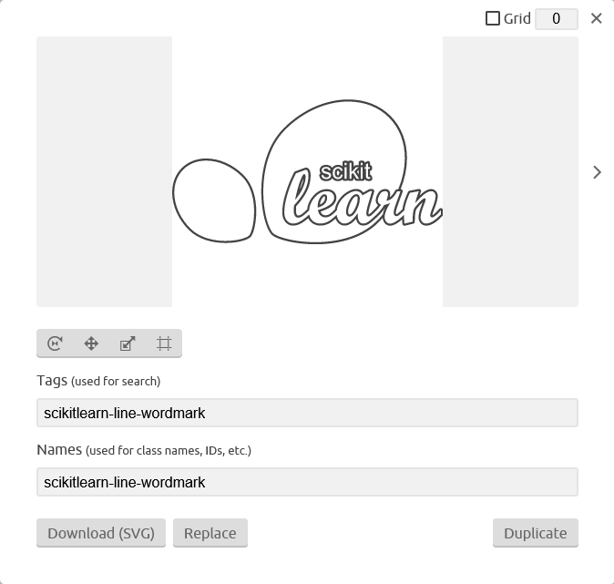 * Add icons for scikit-learn (python library) * Remove unofficial non-wordmark versions * Optmize icons * Update devicon.json Add "tool" in tags Co-authored-by: Josélio Júnior <76992016+lunatic-fox@users.noreply.github.com> * Remove redundant whitespace Co-authored-by: Jørgen Kalsnes Hagen <43886029+Snailedlt@users.noreply.github.com> * Add "library" tag * Rename icons * Optimize icons * Update devicon.json to add aliases * Remove wordmark from regular versions * Add newline to optimized icons --------- Co-authored-by: Josélio Júnior <76992016+lunatic-fox@users.noreply.github.com> Co-authored-by: Jørgen Kalsnes Hagen <43886029+Snailedlt@users.noreply.github.com>