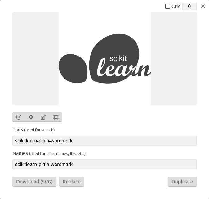In their repo they call the icon scikit-learn-logo-notext.png. If so, we can add this version as the wordmark version