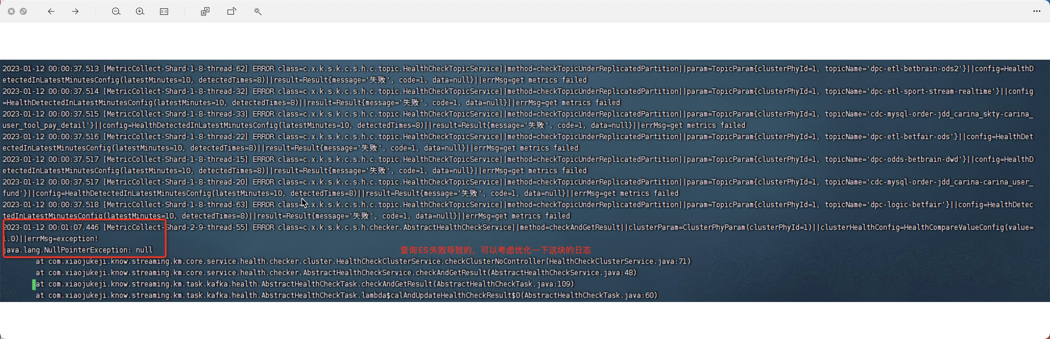 错误的原因是查询ES失败导致的,但是错误日志提示不明显,期望优化一下错误日志: