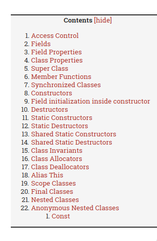 See also: http://dtest.dlang.io/artifact/website-e6672ddd5f4efc6e60942fd38836a7bb2abc1361-6511322dd0ebeb894df6eea5bc0109e9/web/spec/class.html