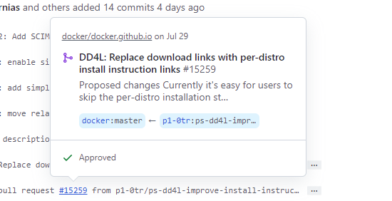 Thanks for the clarification @crazy-max. There was the doubt if the check alongside the commit hash was for having passed the checks or approvals because as it is the exact same icon (screen grab above). |