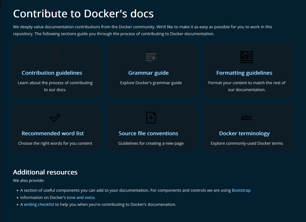 Also a bit out of scope with this PR but in dark mode, icons don't look great: https://docs.docker.com/contribute/overview/ We should have light and dark mode icons I think. Edit: Looks like it's svg so I guess |