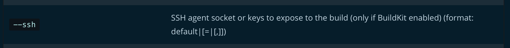 --sshflag with buildx is now properly escaped upstream but with #12083 it now also escapes inline code: https://docs.docker.com/engine/reference/commandline/buildx_build/Signed-off-by: CrazyMax crazy-max@users.noreply.github.com